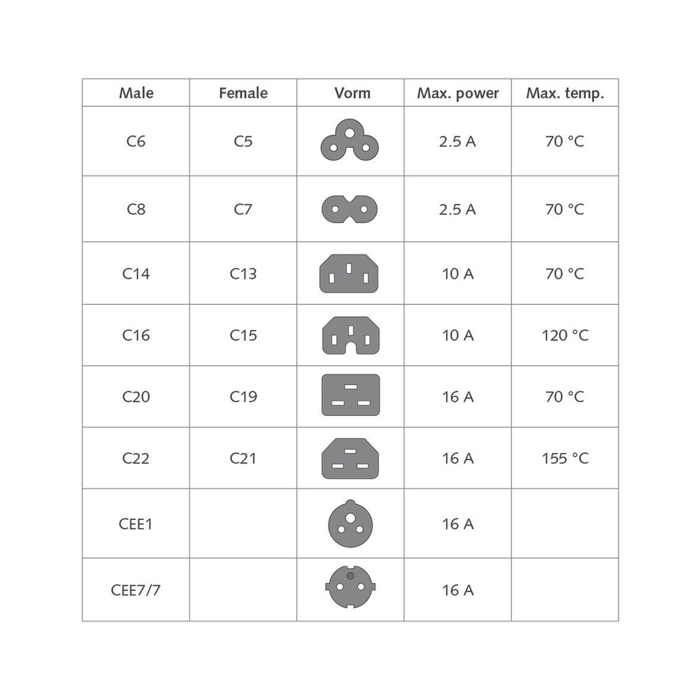 IEC 60320-strömkabel med C14 till C15-anslutning är utformad för att driva nätverksswitchar, servrar och annan professionell IT-utrustning. C15-kontakten är vinklad vänster och är värmetålig upp till 120 °C, vilket gör kabeln till ett pålitligt val i krävande miljöer. Lämplig för servrar och nätverksswitchar, t.ex. HP och Cisco.