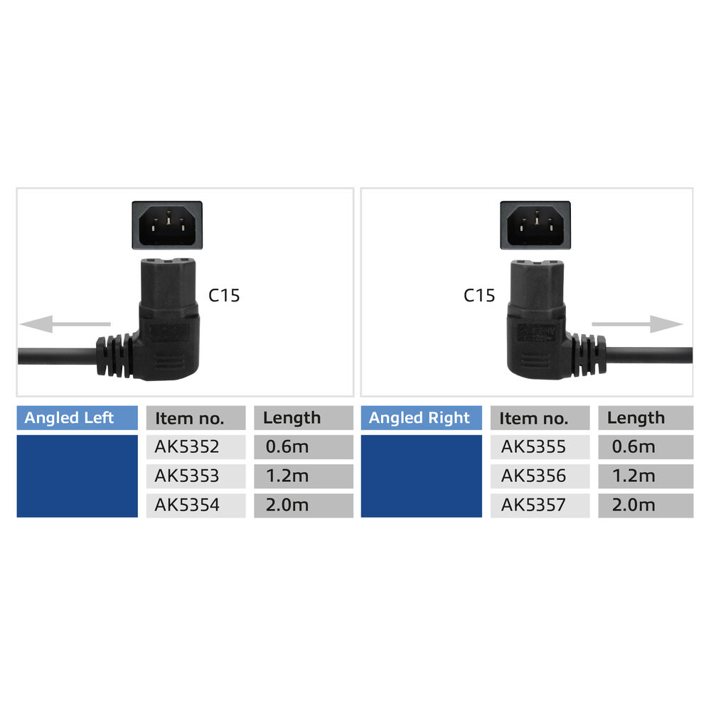 Apparatkabel C14-C15 vinklad vänster - Svart