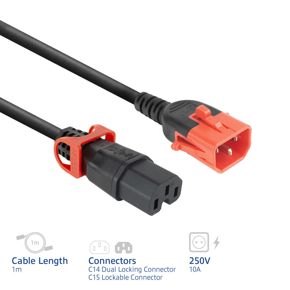 Apparatkabel Dual LOCK+ SL C15 rak LOCK+ - C14 LOCK / SVART