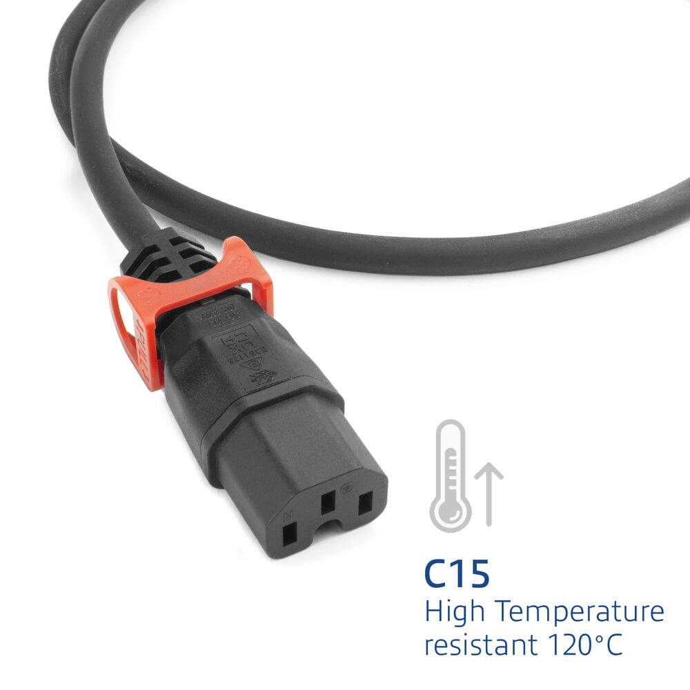 Apparatkabel Dual LOCK+ SL C15 rak LOCK+ - Schuko vinklad / SVART