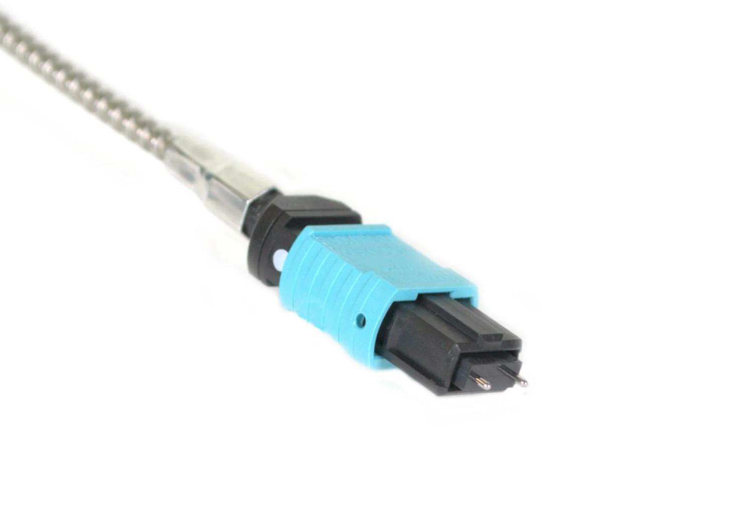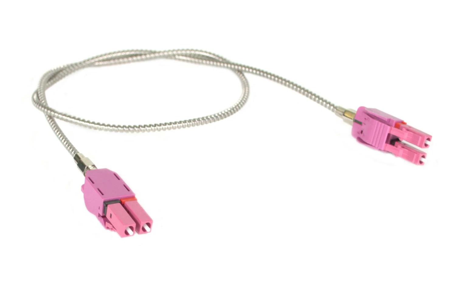 MPO eller LC patchkabel med armering i flexibel rostfri ståltub för inom eller utomhusbruk