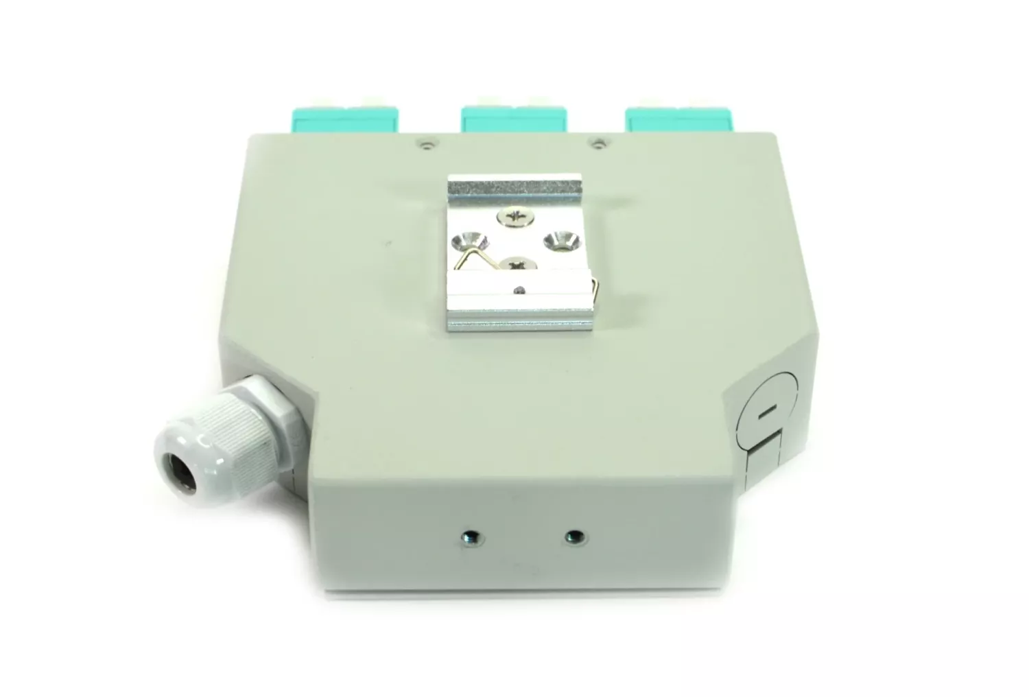 ST DIN Rail Box är en ODF som är särskilt utformad för att fästas på en DIN-skena. Den kan monteras på DIN-skena utan extra förberedelser eller tillbehör, vilket gör den enkel att integrera och ger god fiberåtkomst i el-/fördelningsskåp. Fyra kabelinföringar kan utrustas med kabelgenomföringar eller PG-blindpluggar för slut- eller genommatning. OS2, OM3, OM4. Finns även med LC och SC adaptrar.