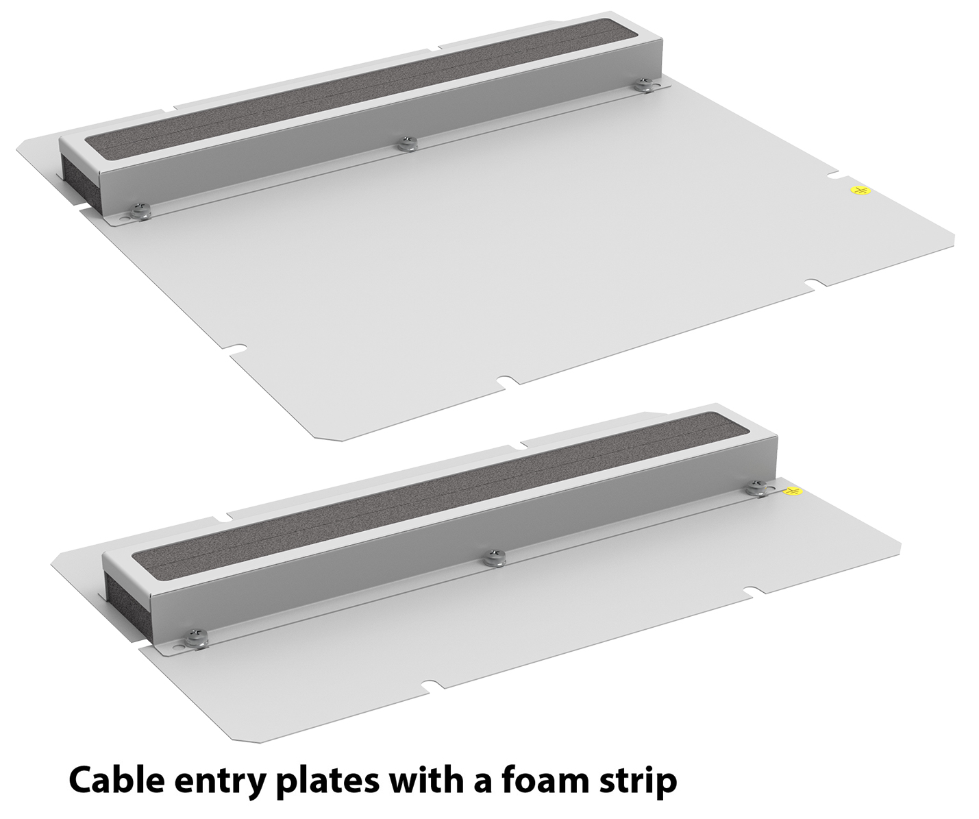 Täckplåt för SZB IT Rackskåp och Serverack med kabelingång i skumlist som monteras istället för knock-out öppningarna i botten eller toppen av skåpen.